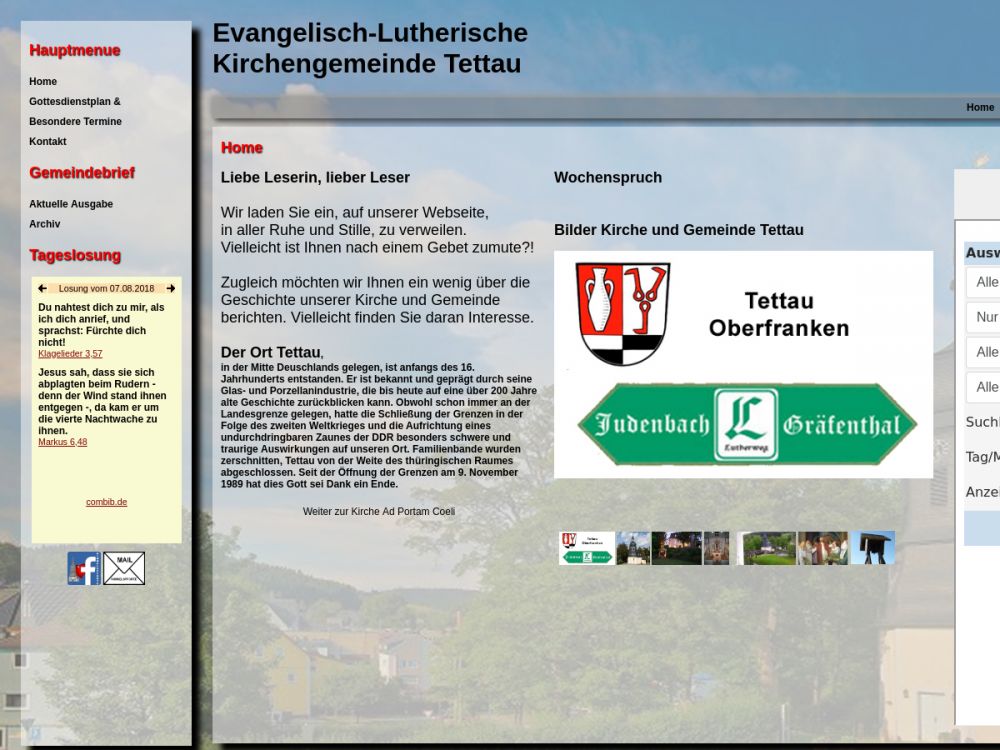 Die Tettauer ev. Kirchengemeinde wurde erst 1922 selbständig. Vorher war die Tettauer Kirche eine Filialkirche der Langenauer Kirchengem. Heute gehören die Orte Tettau, Alexanderhütte und Sattelgrund mit ca 1000 Personen zu unserer Kirchengemeinde.Gemeinde-Info
